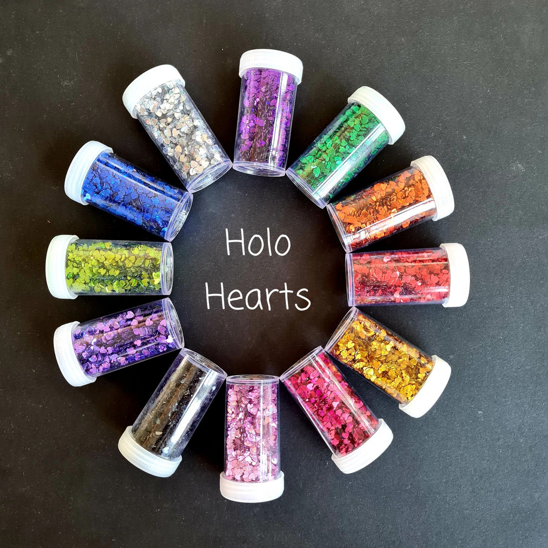 HOLOGRAPHIC HEART GLITTER SET OF 12
