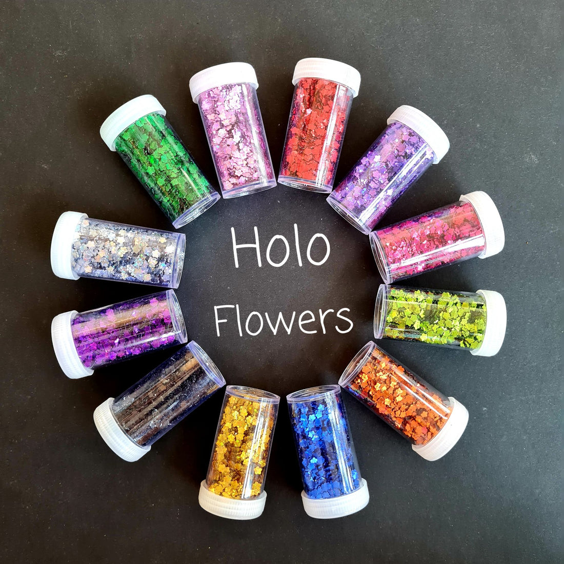 HOLOGRAPHIC FLOWER GLITTER SET OF 12